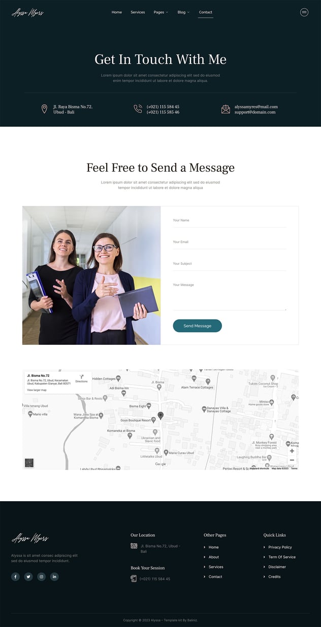 With its clean and simple design, alyssa is easy to customize and can be used by anyone without needing to understand coding. The 100% responsive layout ensures that your website will look great on any device.
