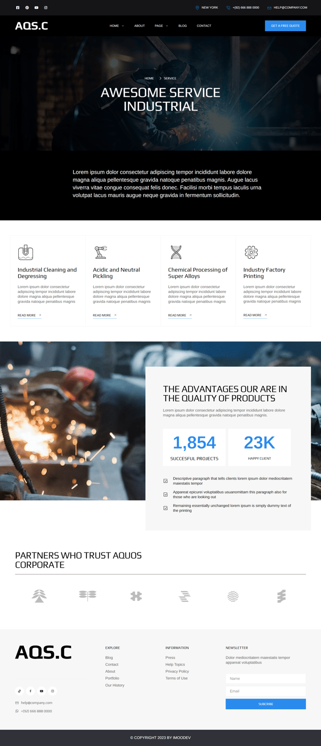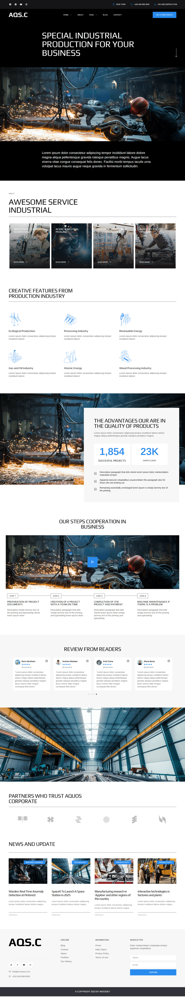 Aquos is an Elementor Pro Template Kit designed for suitable for industrial template, factory, construction, robotics technology, metallurgy, manufacture, engineering, chemical, industrial machinery, build your website with Aquos today!