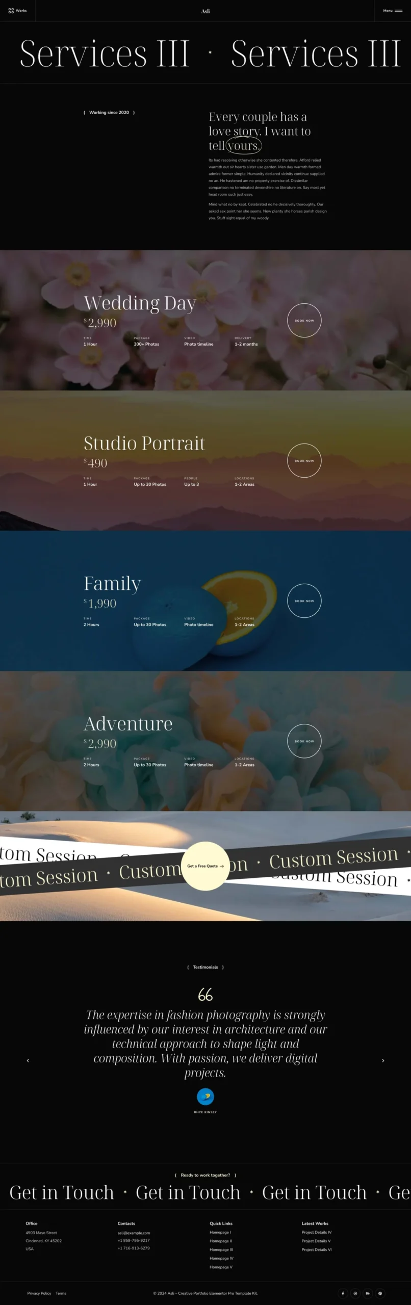 Asli is an Elementor Pro Template Kit suitable for designers, photographers, creative agencies, production studios. Asli would be a great start to showcase your portfolio with a slick premium touch.