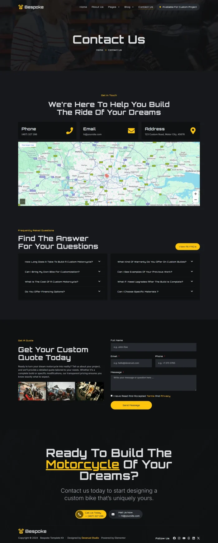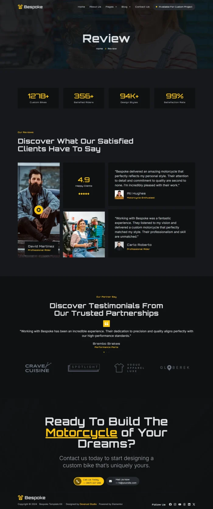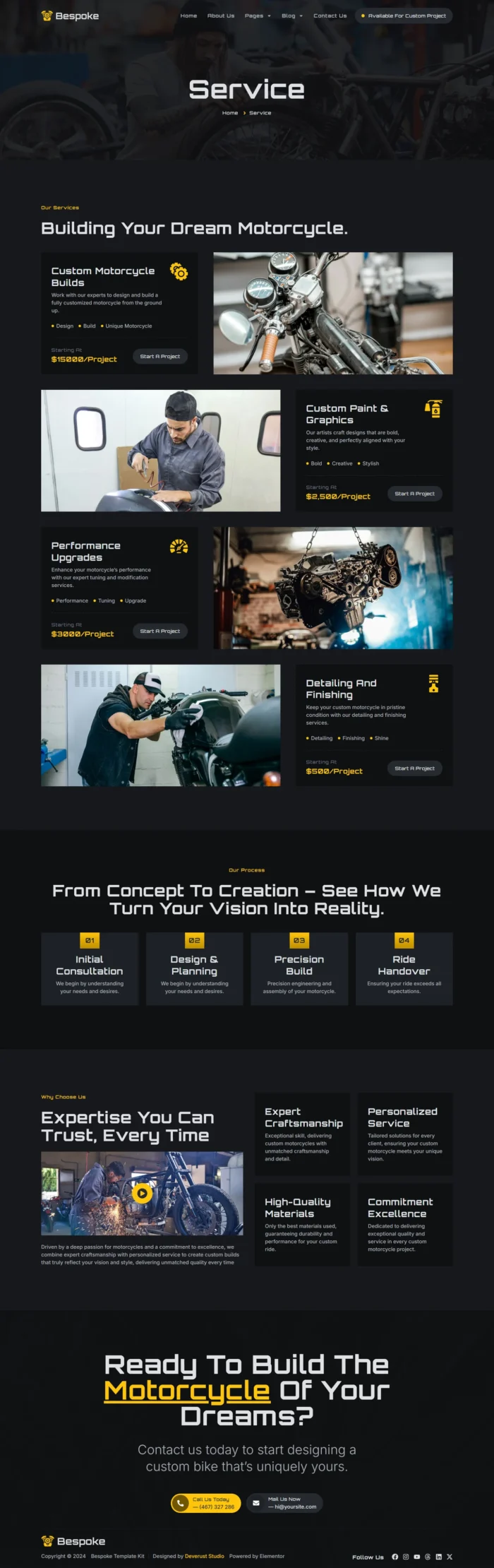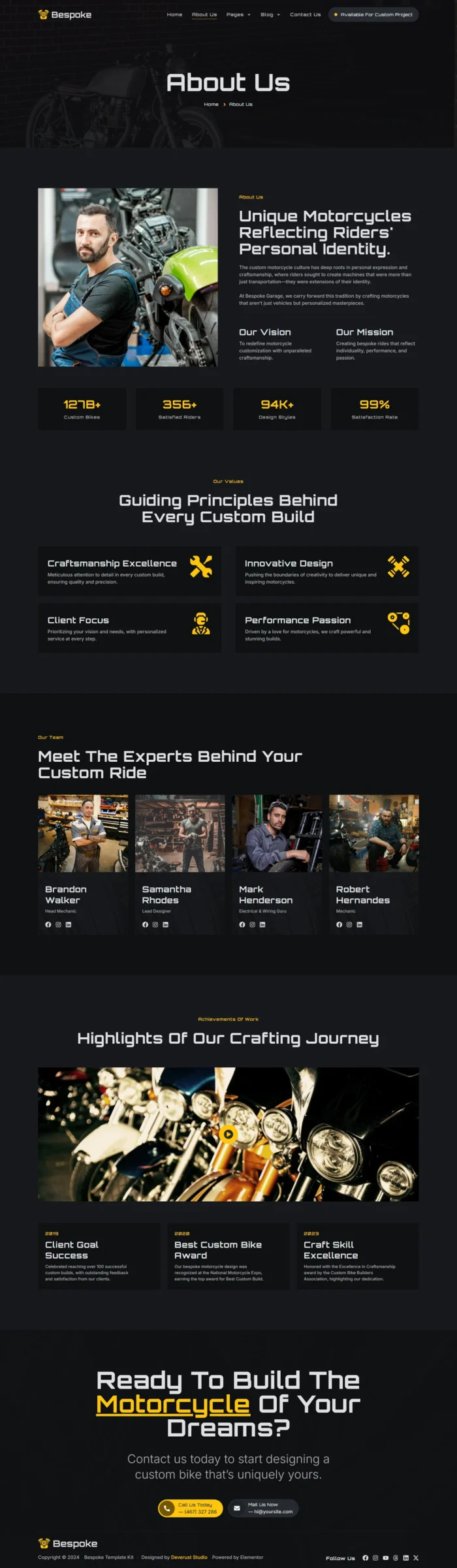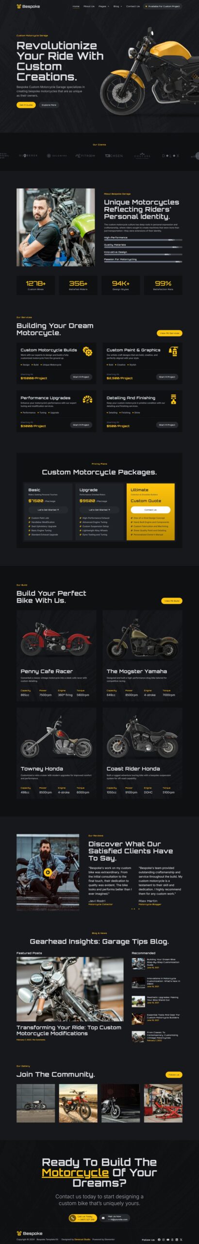 Bespoke - Custom Motorcycle Garage Elementor Pro Template Kit