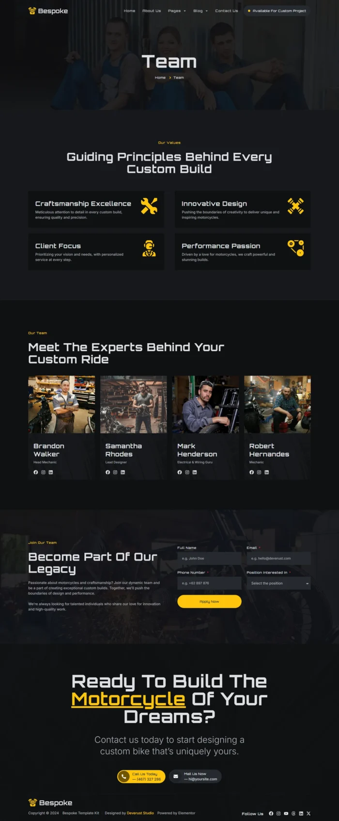 Bespoke – Custom Motorcycle Garage Elementor Pro Template Kit