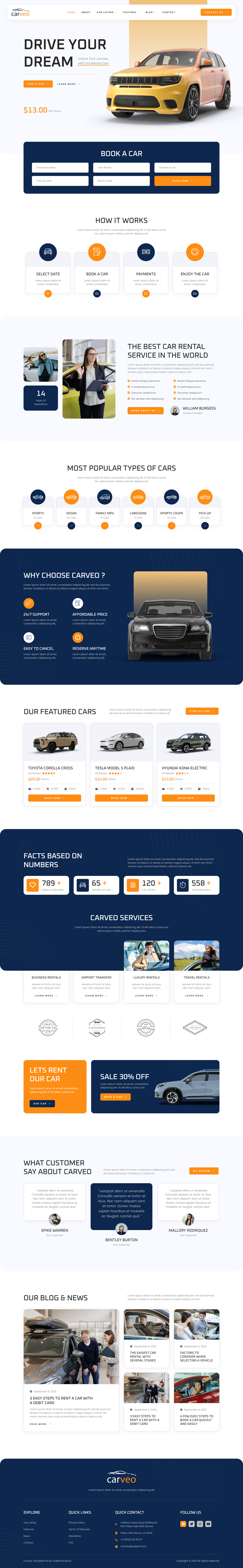 Carveo is an Elementor Template Kit for building websites in WordPress with the Elementor Page builder plugin. Elevate your car rental business with a seamless, user-centric experience for both rental providers and customers.