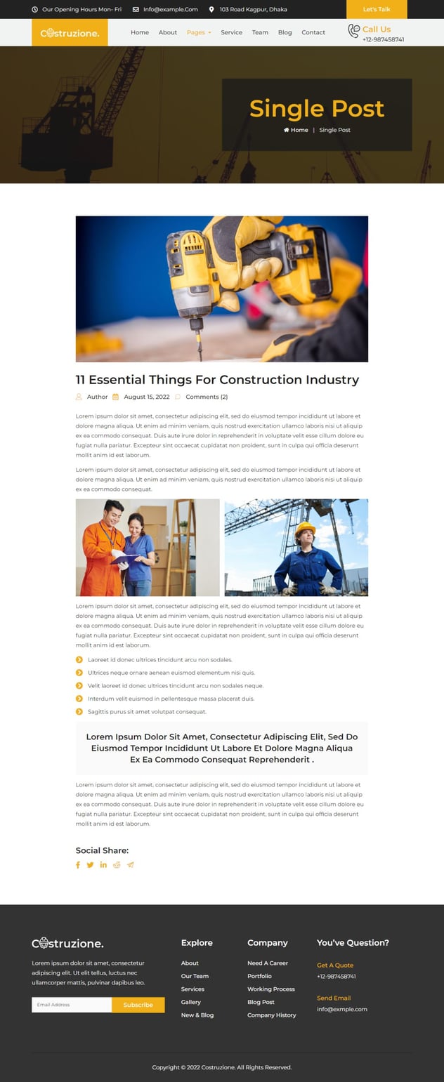 Costruzione – Construction Elementor Template Kit is perfectly designed to make user-friendly websites for valuable clients with pre-made web templates. It is fully responsive and fits on various displays and resolutions from regular desktop screens to tablets, iPhones, and small mobile devices. It is super easy and no coding is required to make a complete website.