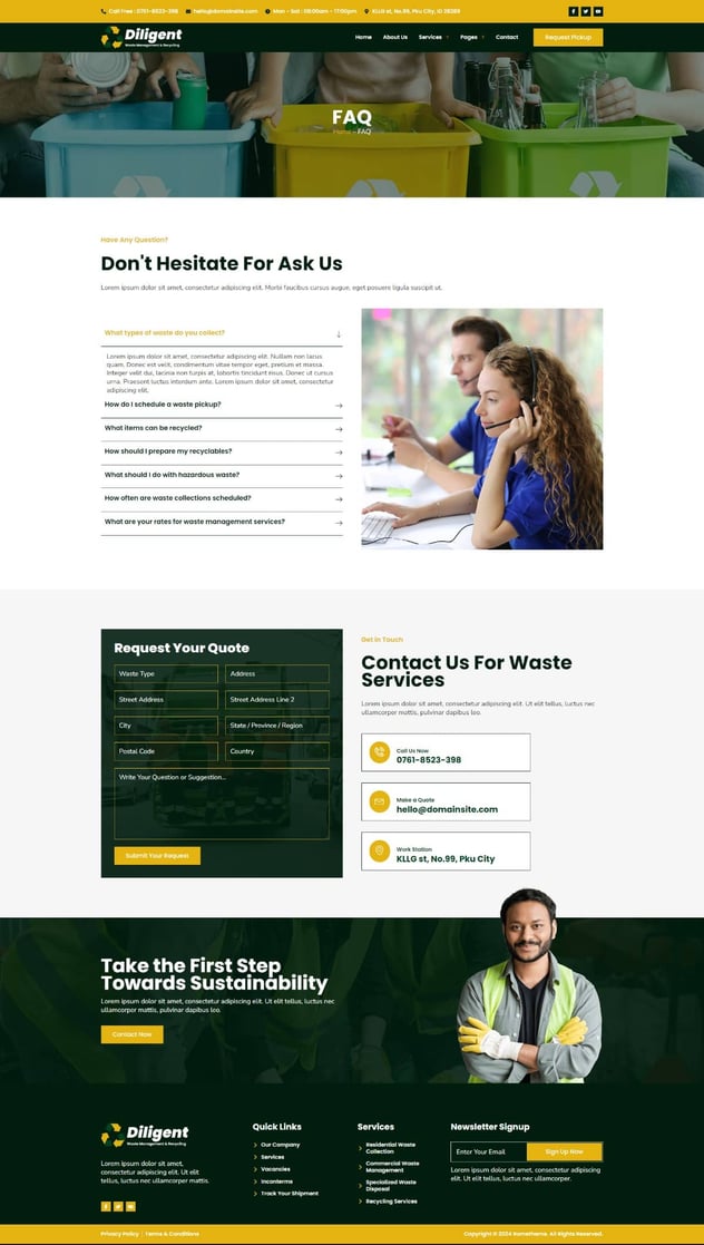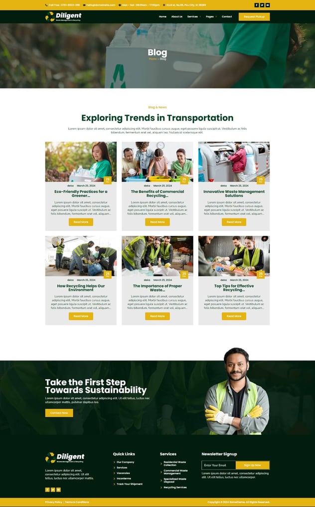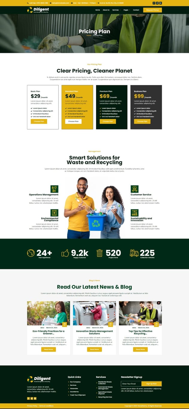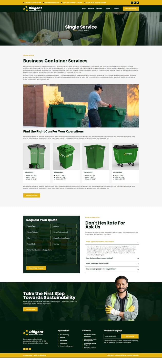 Diligent is an Elementor Template Kit specially designed for Waste Management & Recycle Company websites! The template kit comes with an ideal selection of templates for any businesses or services related to Waste Management, Recycle Company, Environment, and any related business. This kit has a modern and unique design with a 100% fully responsive layout, easy installation, and sure very easy to customize because using Elementor so you don’t need a single line of coding!Save your time.