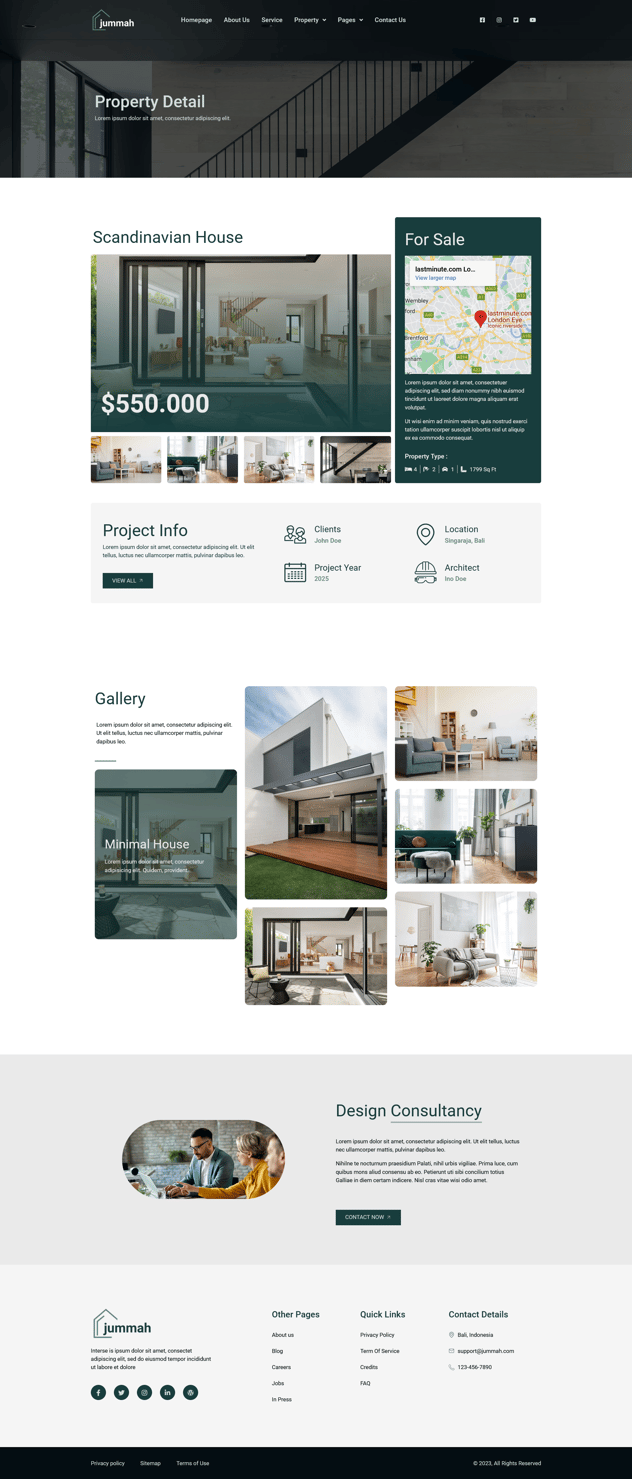 Jummah – is a fully-featured Elementor Template Kit created especially for Real Estate, Interior Designer, Architecture and Furniture website. This template has a beautiful, clean and unique design with a 100% responsive layout and easy to customize.