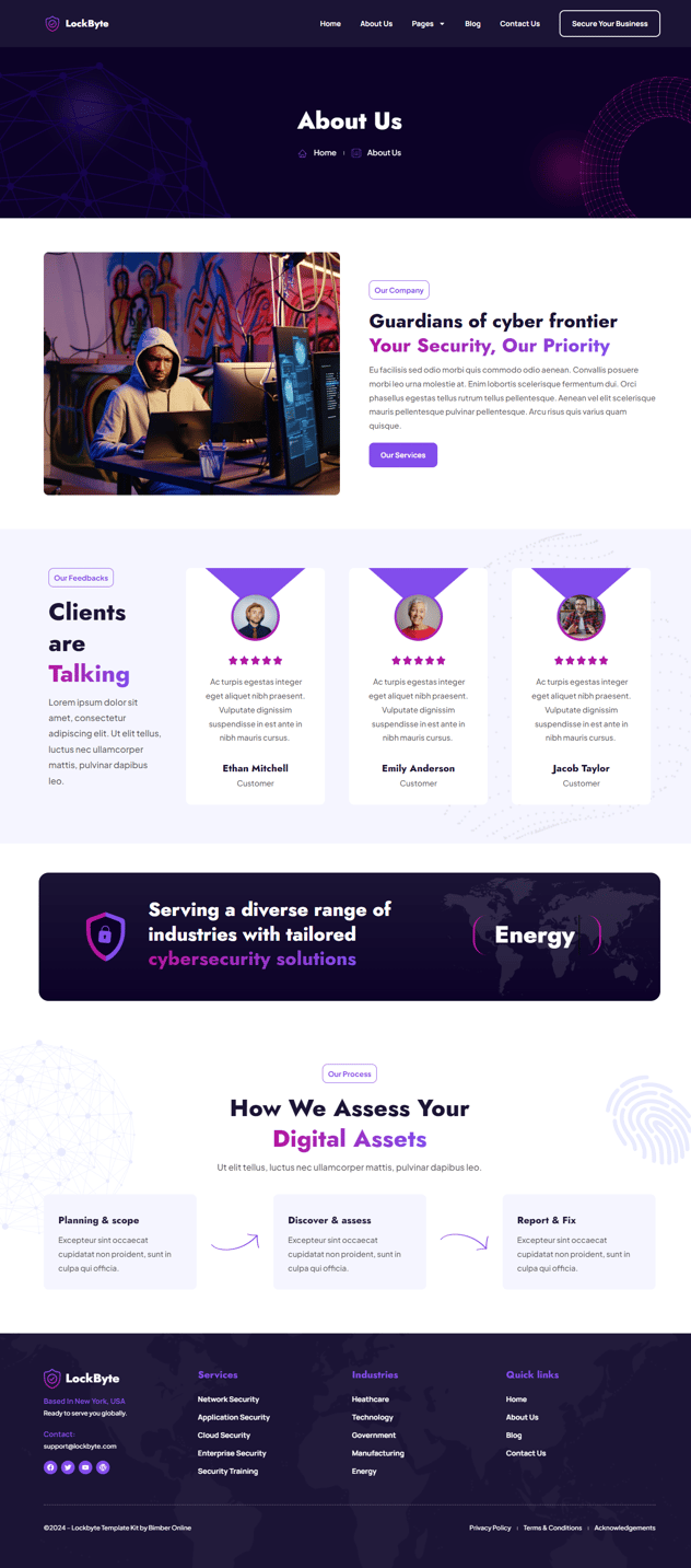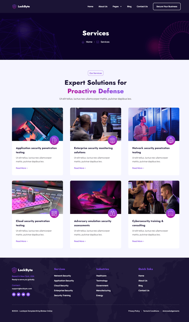 Lockbyte is an Elementor template kit specially developed for cyber security and telecom services. This template kit comes with an ideal selection of templates for everything related to the data privacy, gsm, network protection etc. and it’s sure to be very easy to customize because everything was built using the Elementor plugin, so you won’t need to use a single line of coding!