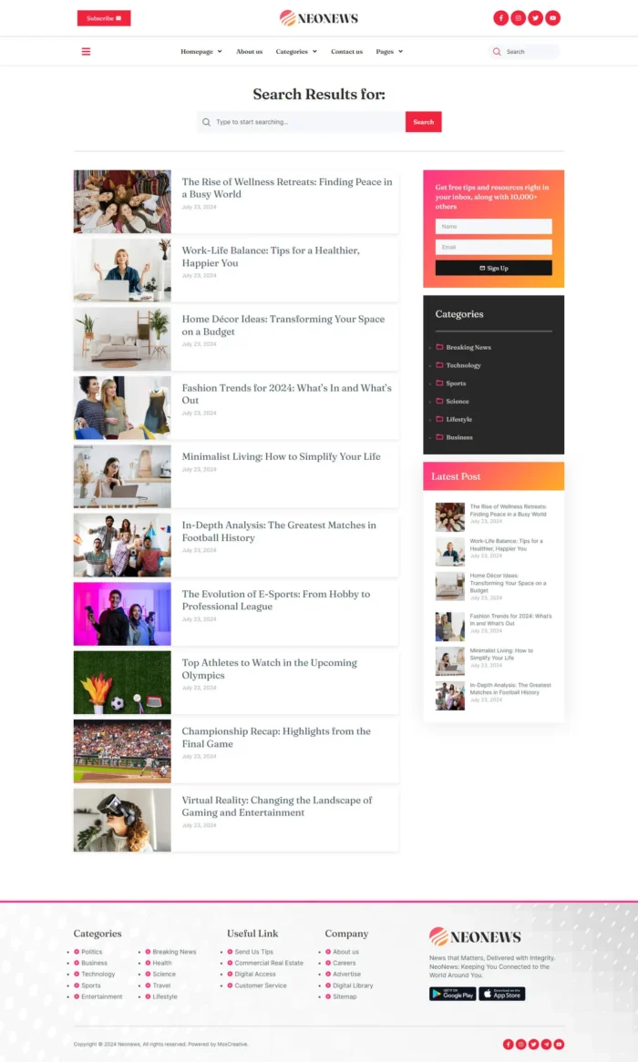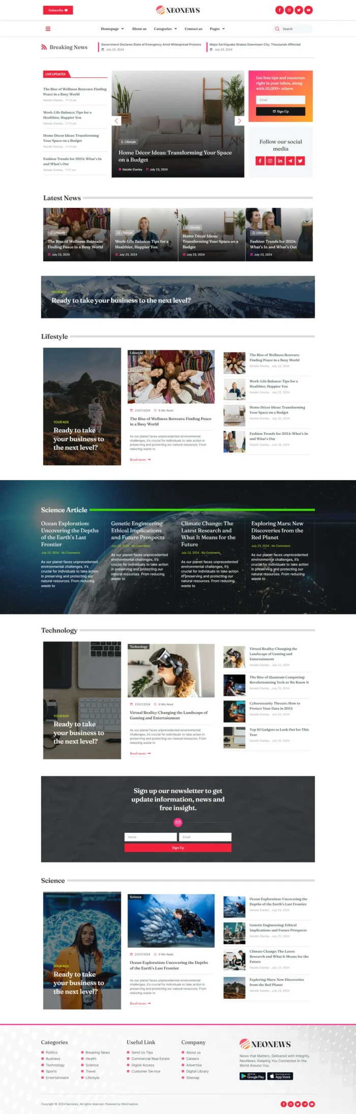 NeoNews is Elementor Template Kit for blog & magazine website. This template has cool layout with clean, modern and professional layout design. Suitable for any website related to news, magazine, blog, article, tutorial, etc. Just drag and drop, no coding required.