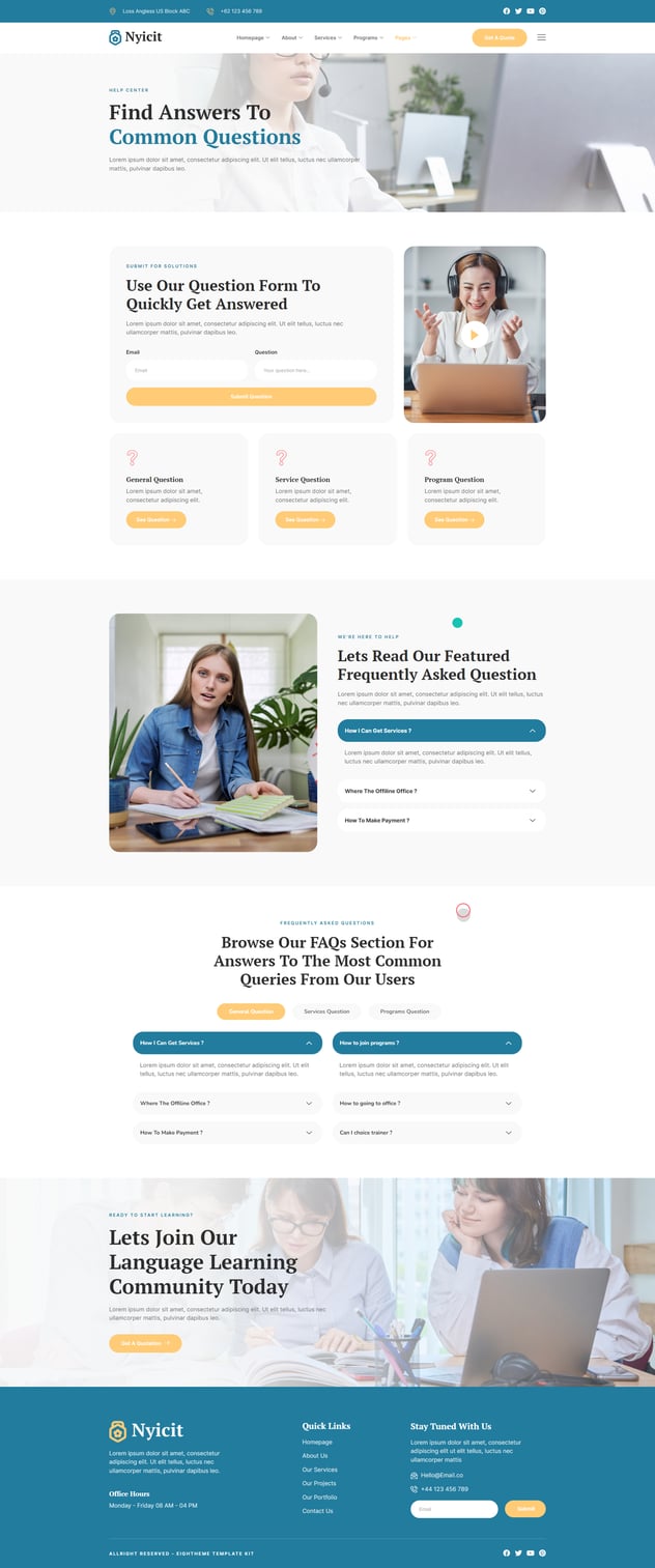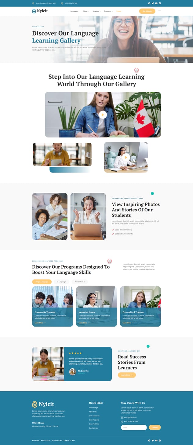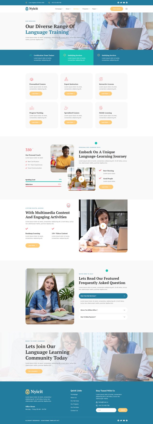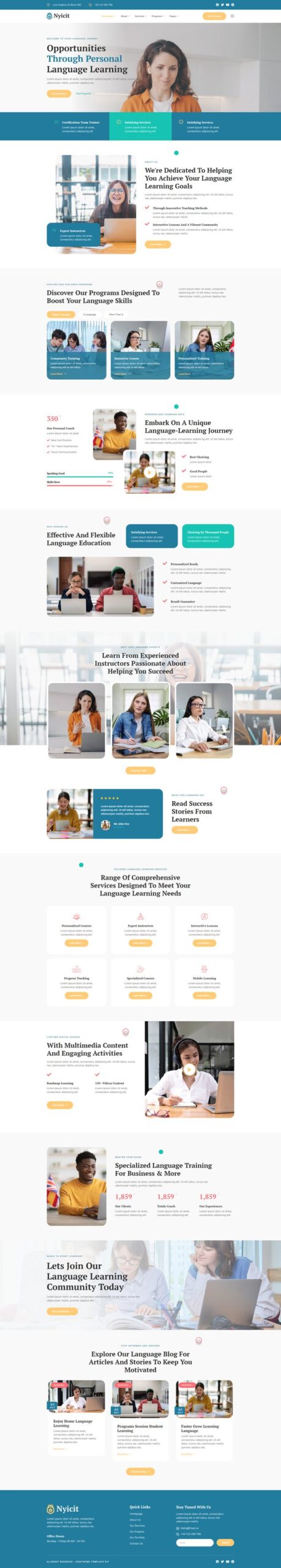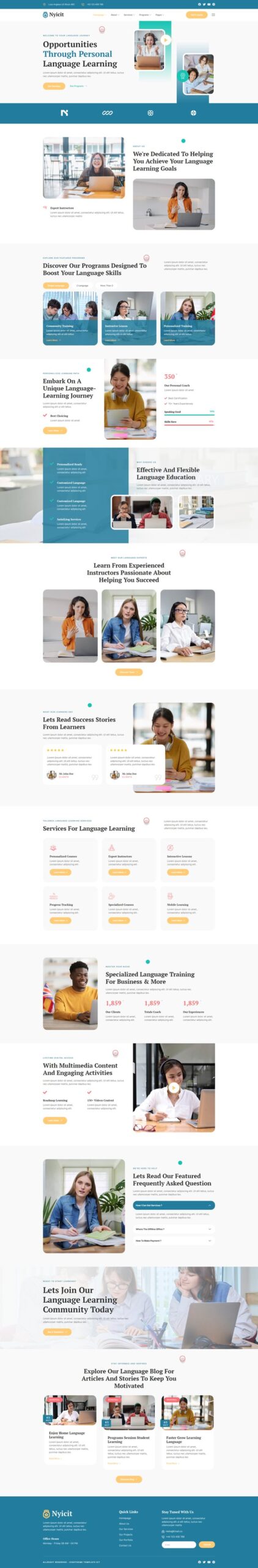 Nyicit – Personalized Language Learning Elementor Template Kit is a collection of layouts for the Elementor page builder WordPress plugin, designed for use with Elementor Free Version for a clean Design. It works with most themes and is optimized for use with the free Hello Elementor theme.
