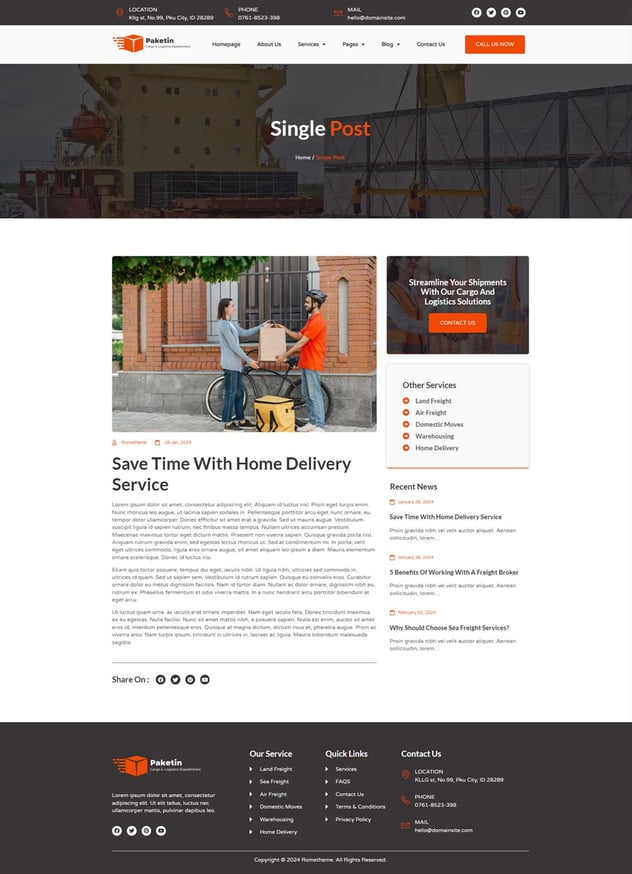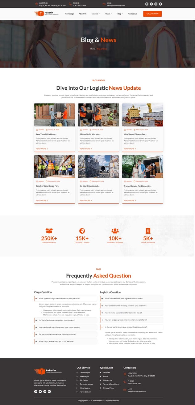 Paketin is an Elementor Template Kit specially designed for cargo and logistics websites! The template kit comes with an ideal selection of templates for cargo, courier, delivery, shipping and everything related to cargo and logistics business and sure very easy to customize because using Elementor so you don’t need a single line of coding!