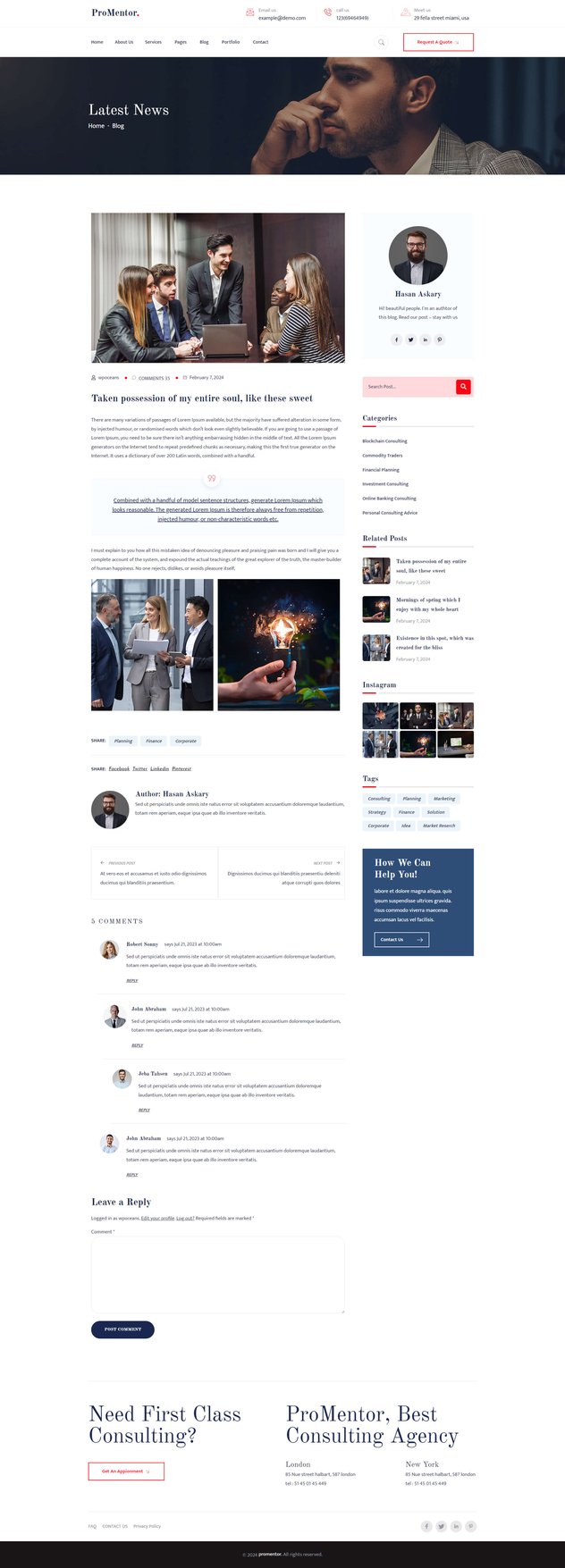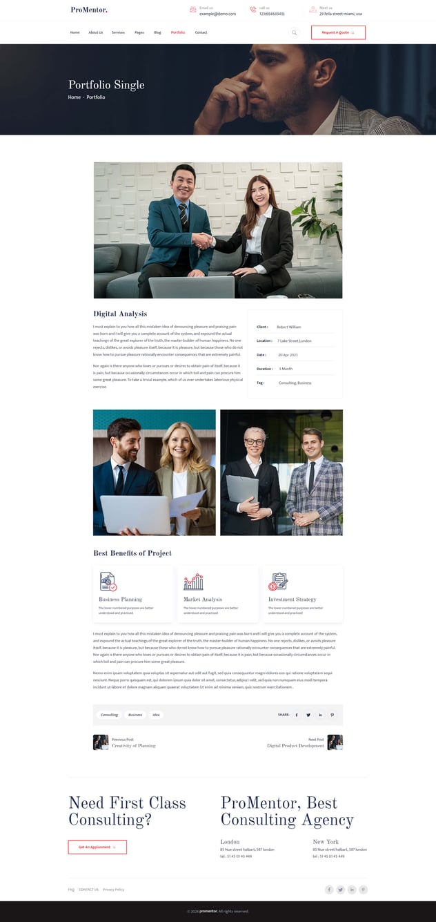 Promentor is Elementor Template Kit for Consulting Services Website. Created With Elementor Page Builder, you can easily edit or customize it, no coding required, just drag and drop.