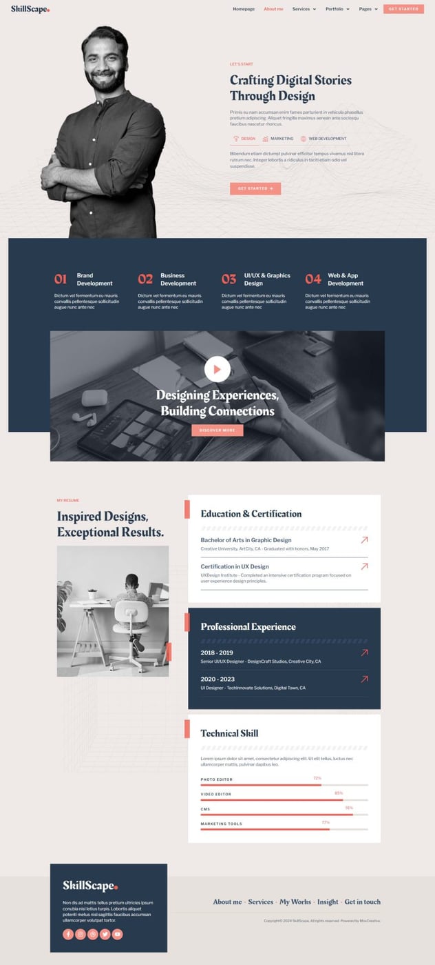 SkillScape is an Elementor Pro Template Kit for Digital Creative Agency & Portfolio websites. It has 12+ pre-built templates with professional design and modern style. You can also use this creative template kit for any kind of businesses or services such as freelancer website, design agency, digital marketing, website development, social marketing, SEO service, graphic design, and many others.